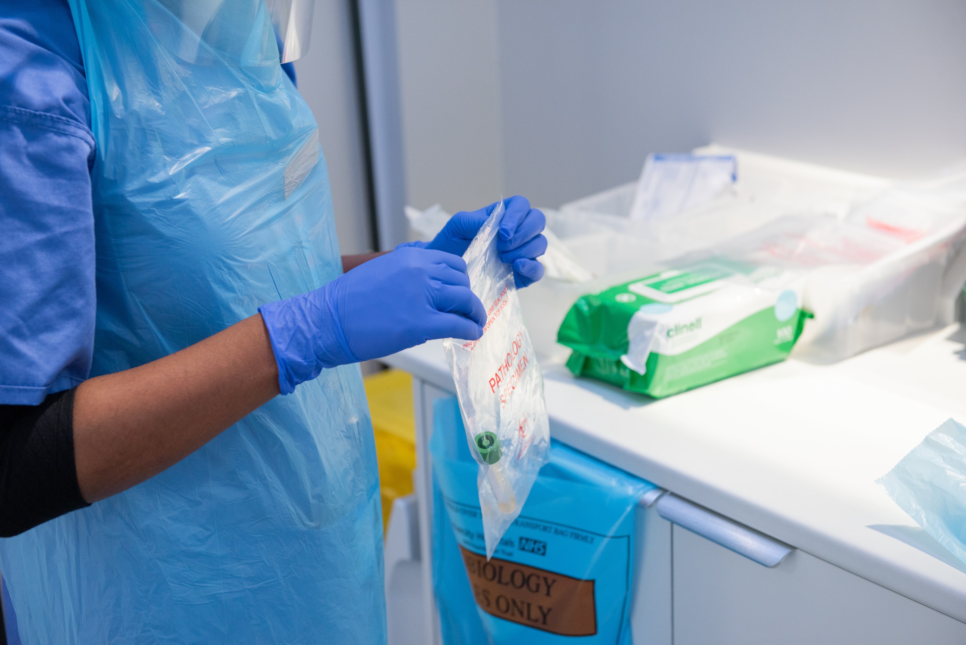 All samples are made anonymous and unlinked before going to the Oxford Bio-Archive at the John Radcliffe Hospital. We store them in small, 2D-barcoded FluidX tubes. These tubes are good for long storage, save space, and work with the robots we use in the lab to speed up our work. An SQL database helps us find samples fast, so we can start wide testing if needed.